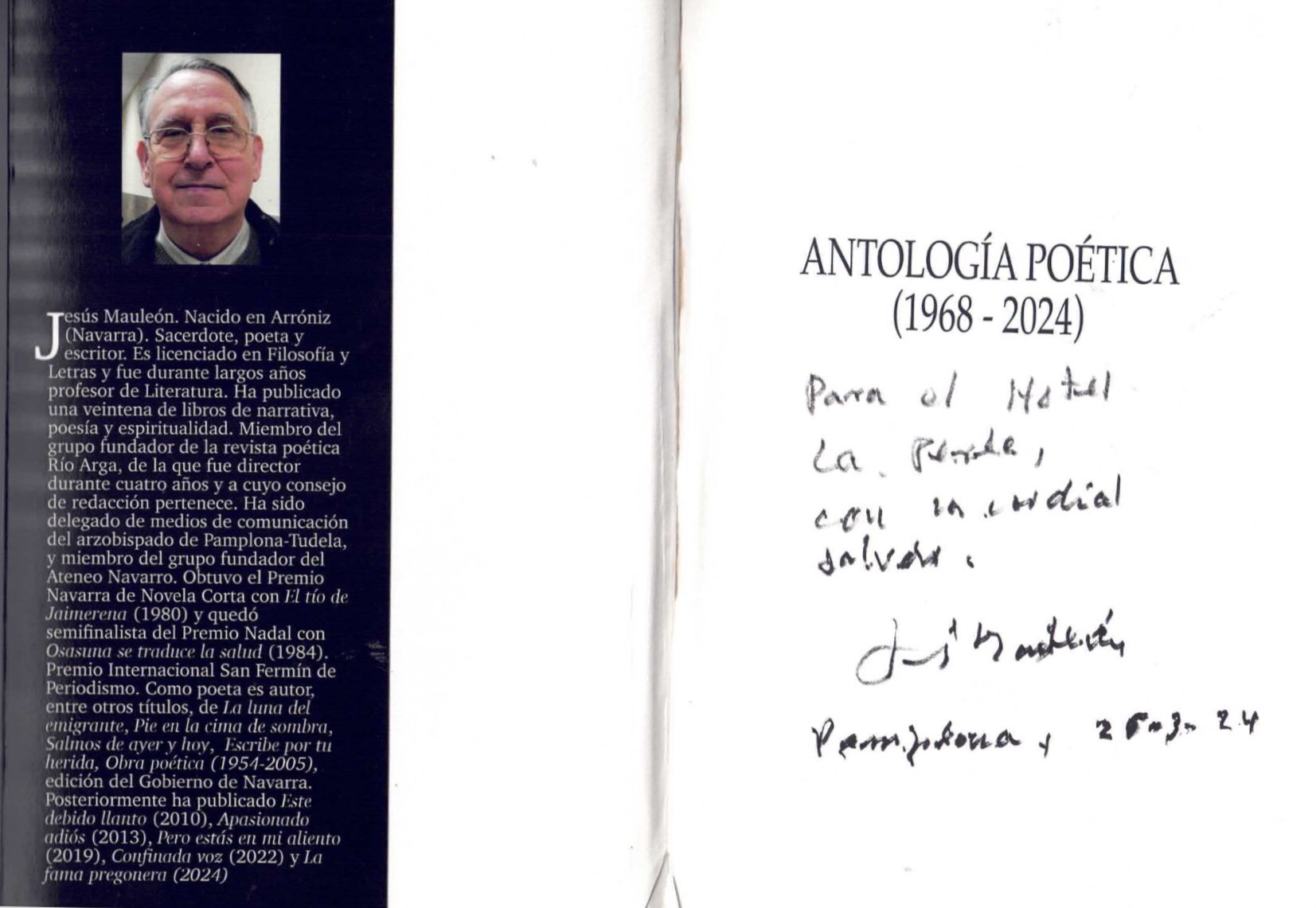"Para el Hotel La Perla, con un cordial saludo. Jesús Mauleón"